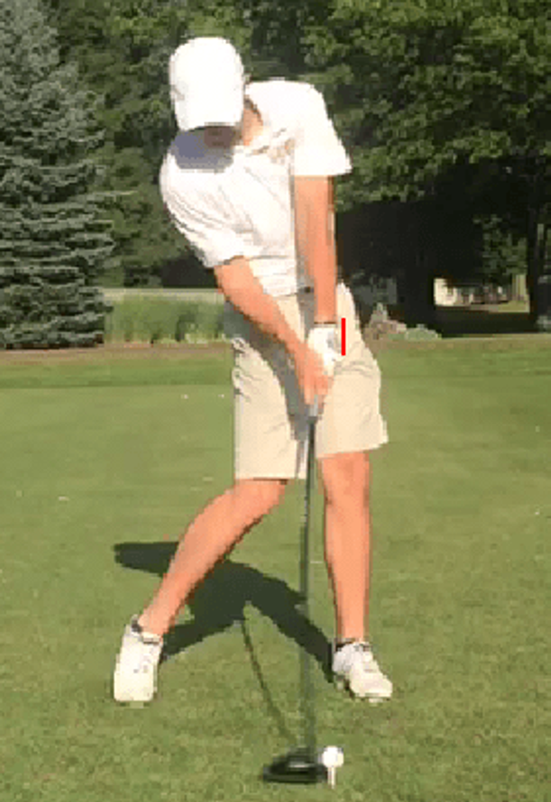 Also, you can't see the wrists clearly, but at this point in the swing, Rory's left wrist is geometrically flat with maximum radial deviation, and his right wrist is dorsiflexed with zero deviation.