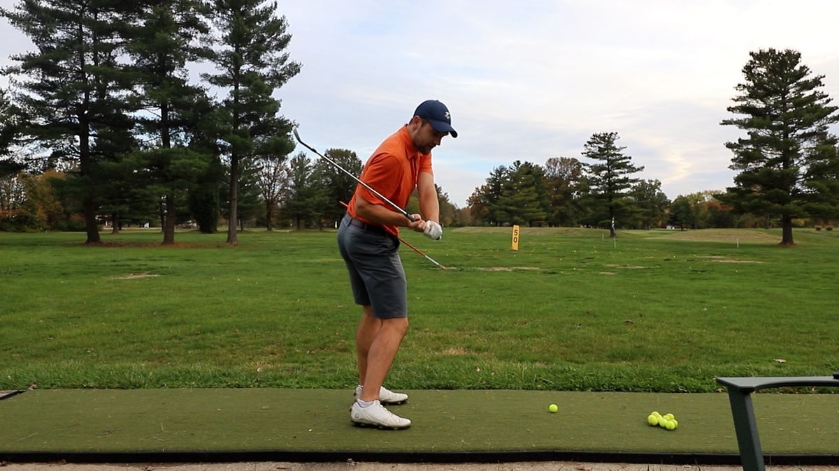 I talk more extensively about this in the split hand drill, but if you struggle to get the hands past the alignment stick in the beginning, I suggest trying to simulate the proper on plane motion by grabbing the club 1/3 of the way down the shaft and rehearsing the proper impact position: