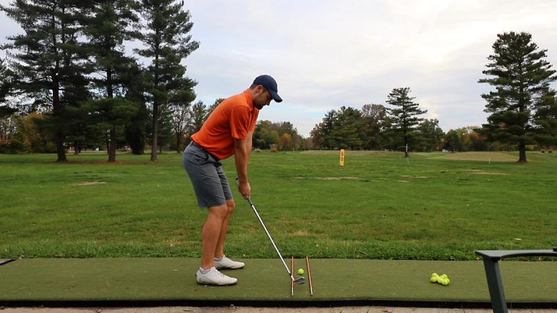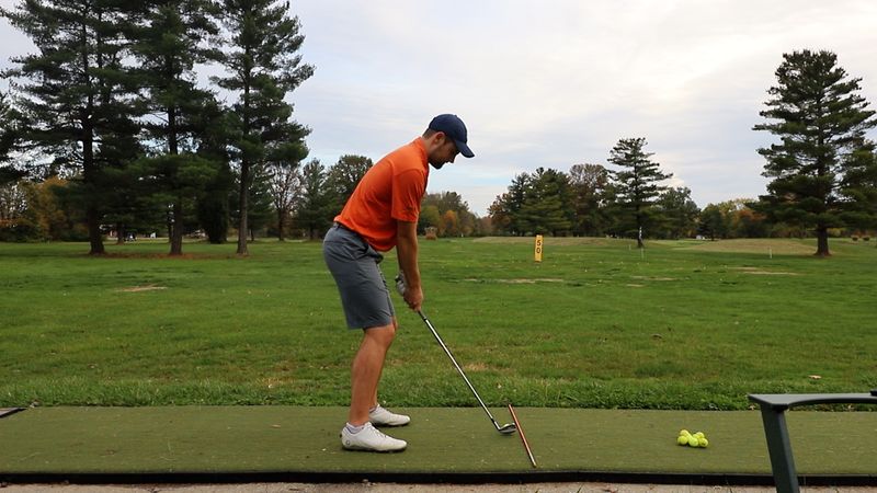 - If you struggle hitting too far from the outside, place the alignment stick right of the ball (as pictured in the example below)