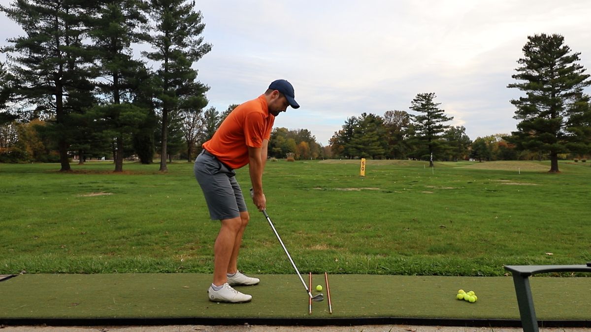 This advanced player drill focuses on teaching the proper swing path to strike the ball with. By placing two alignment sticks surrounding the ball, you'll not only be able to visualize the proper strike path, but also get a subtle correction with sound cues as your club hits the alignment stick on mishits.