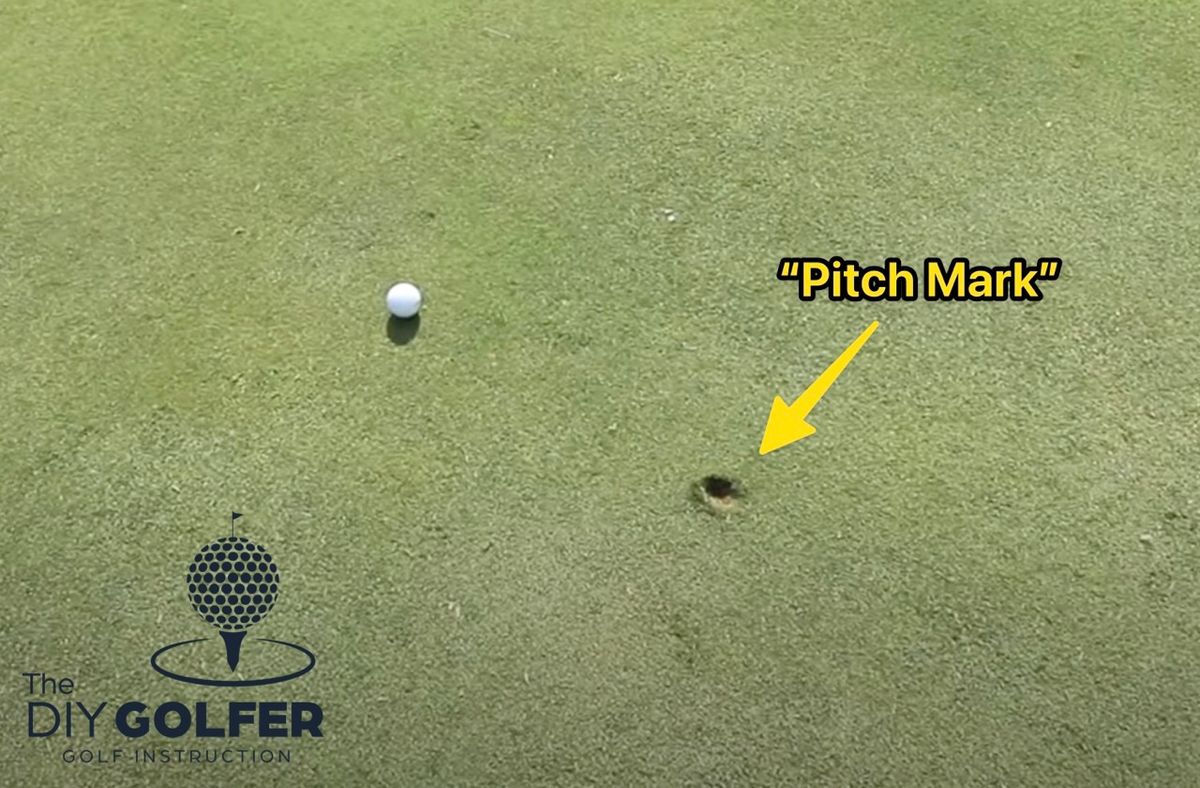 Also known as a "ball mark", this is the small indentation the ball makes when it lands on the green.